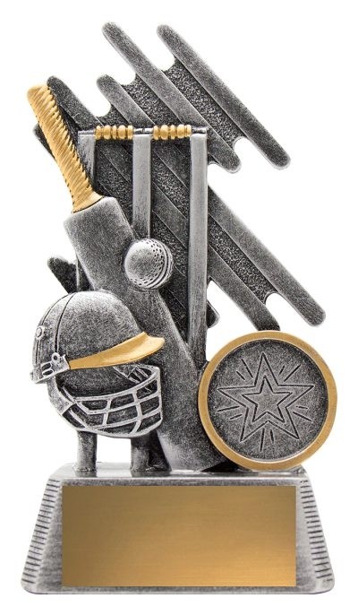 Zoom series of Cricket trophies celebrates iconic elements of the sport over multiple sizes – ideal for both participation awards and best playing awards.