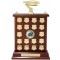 This 18 year 43cm Timber Veneer Trophy Shield will look fantastic in any club's trophy cabinet. A perpetual trophy is a great way to reward your PLAYER OF THE YEAR or TEAM OF THE YEAR or CLUB CHAMPION. The engraving plate on the front allows for the name of the award, and then individual engraving plates enables 18 names to be added over the years. The veneered timber with a gold sports figure can be customised for many sports. (contact us with the sport that you would like it to be made into).