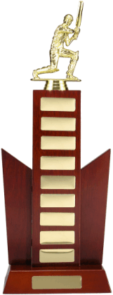 This 9 year 45cm Timber Veneer Trophy will look fantastic in any club's trophy cabinet. A perpetual trophy is a great way to reward your PLAYER OF THE YEAR or TEAM OF THE YEAR or CLUB CHAMPION. The engraving plate on the front allows for the name of the award, and then individual engraving plates enables more names to be added over the years. The veneered timber with a gold sports figure can be customised for many sports. (contact us with the sport that you would like it to be made into).