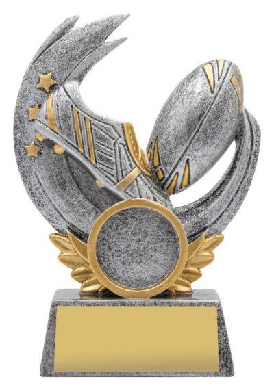 Lunar series of Rugby League / Union trophies project superbly crafted elements on stylish background – design that holds custom logo for your club. Trophy comes with ENGRAVING INCLUDED. Color: Antique Silver Material: Resin Insert Disc: 25mm Width: 95mm Weight: 325g